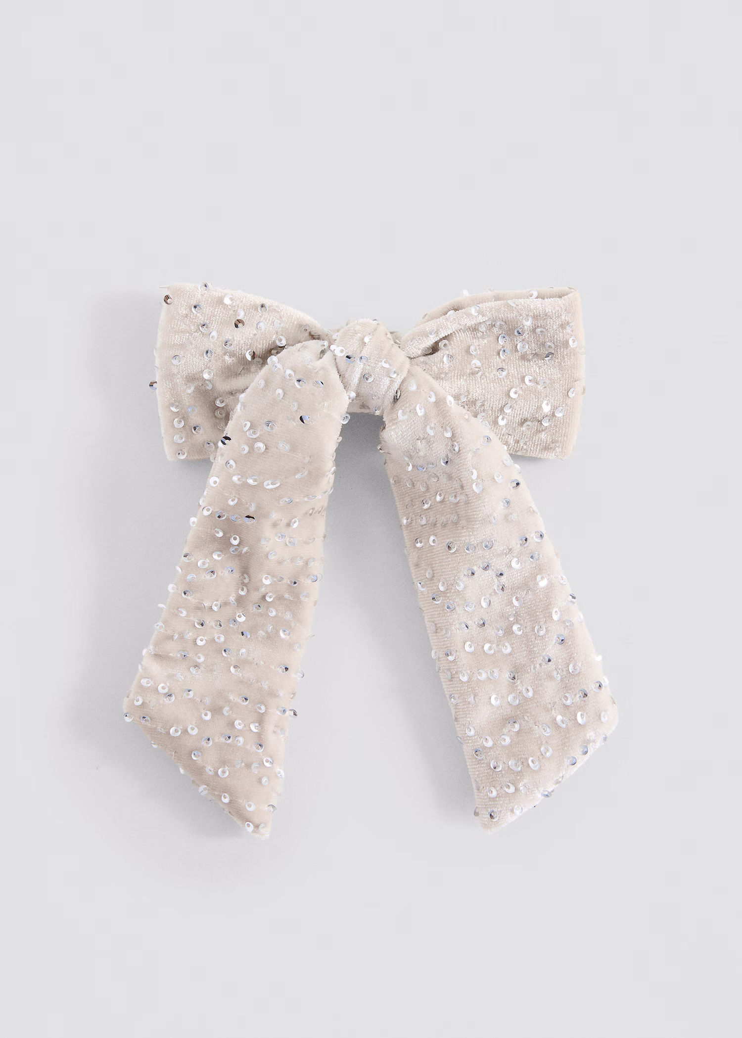 For your mini-trendsetters, Accessorize has a cute duo of velvet scrunchies. Then add some festive flair with Mango’s hair clip with sequin bow – glittery, girly and super cute. Perfect to pair with any Christmas day outfit.